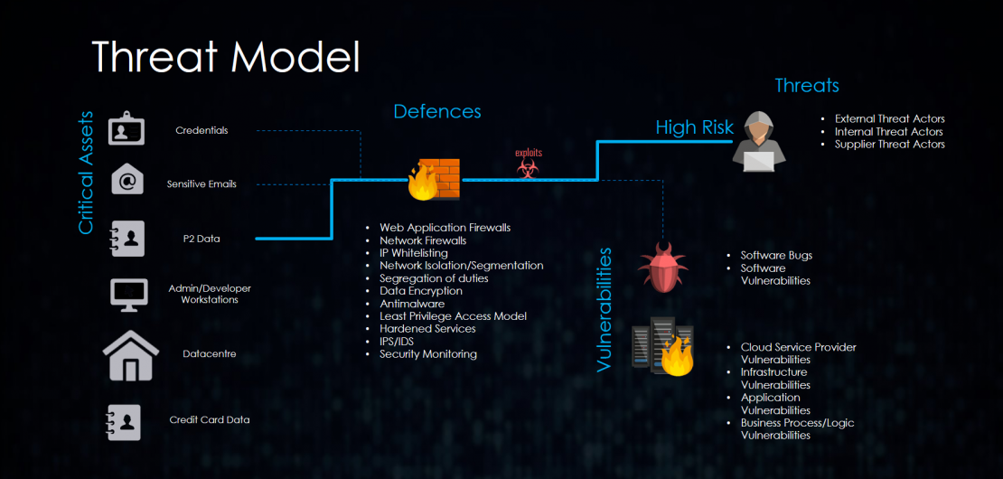 Ta Da – we have a threat model! My jokes are on fire today. Ok so back to business, threat modelling is the process of understanding our threats and the routes they make take or leverage against us.