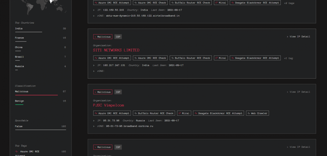 Bad Packets report that threat actors are scanning Azure ranges (at least) for this vulnerability. It’s likely this is due to the lack of concrete view from passive scanner data: