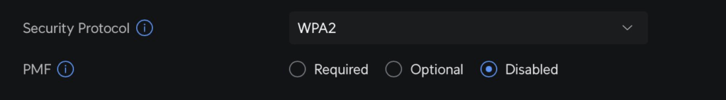 and look the config for this SSID is: WPA2 PSK with PMF = disabled! so like this should be spot on for pawnage! they key is weak as hell too!