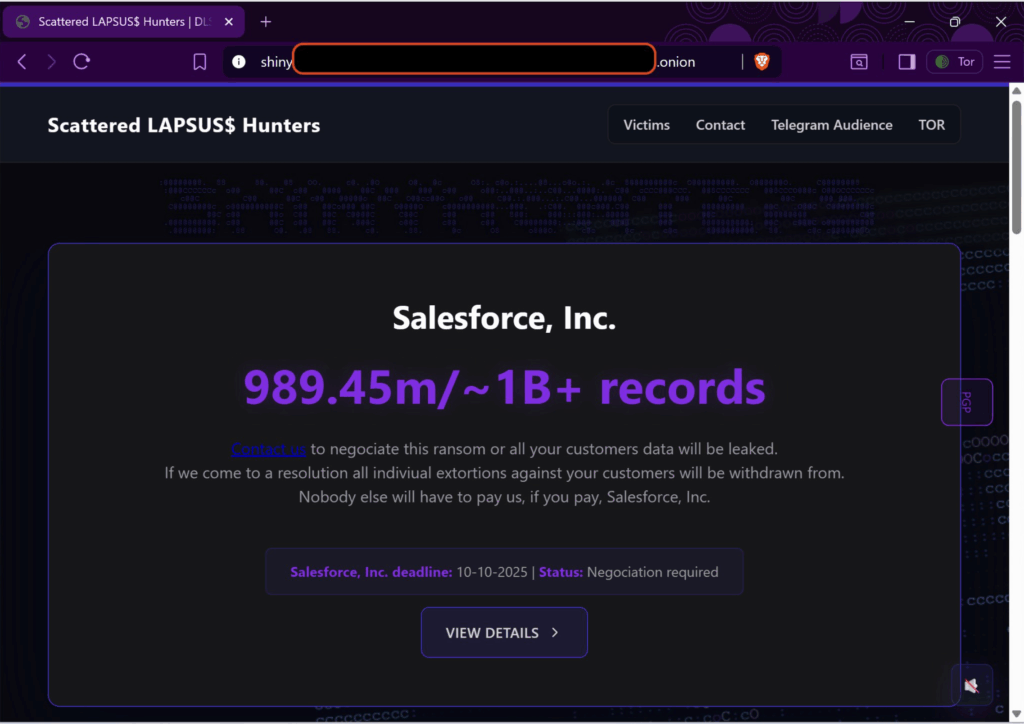 "This message serves as formal notification that Salesforce, Inc. has been hacked by us and faced a major information security breach. Near 1 billion records containing sensitive Personally Identifiable Information (PII) have been exfiltrated from your systems. The processed data we took includes information subject to a lot of privacy regulations. As we have it in our possession, you are directly facing cross-border legal exposure. Other records hold strategic value, which could compromise Salesforce, Inc.’s market position if released. We also dumped over 100+ other unnamed instances because you do not enforce 2FA or any other type of OAuth Apps security. Failure to meet these demands will ultimately have us release all of the compromised data and you will be dealing with the escalation of all consequences described above. Because you had no preventive measures in place you will be dealing with them a lot. A lot more information about full lists of companies and each of their data samples can be provided to you, if requested. Unless you comply with our demand, as of 10/10/25 (deadline), we will be openly complying with the many law firms that are pursuing civil and commercial litigation against you. Specifically, we will be cooperating with the Berger Montague Law Firm if you do not comply with our request. Not only will we provide them with full lists of affected companies along with the information on the breach and data samples of each affected companies, we will also be contacting said companies and affected individuals from each companies with instructions to aid law firms with their lawsuits against your company. We will also be documenting publicly how your company made little to no attempt to prevent unauthorised access to PII, which contained, including but not limited to, Driver Licenses, Date of Births, Social Security Numbers, and more. For example, we e-mail taunted you from shinygroup[at]tuta[.]com in July 2025 and you never took any further preventative action to stop us. This especially proves our point, it would be bad if we went public with this and showed proof. We will also be submitting a full document, with clear outlines of how your company as a data controller under European GDPR and many other similar laws such as CCPA, HIPAA, etc. could have, over our year long campaign, prevented such intrusions and data-thefts. This document will contain technical details regarding how our attacks were conducted, the fingerprint of our requests and how this clear defined pattern of networking traffic could have been easily blocked. This document will contain specific details regarding; number of US, Californian, European, and many other global citizens affected from mainly data violation strict countries like South Korea and China, along with the fields of data exposed. Lastly, our documentation will also include and suggest that there are grounds for Criminal Negligence charges. Salesforce had a duty of care, of implementing reasonable security measures to prevent these simple data breaches. Salesforce was provided the intelligence of the attacks taking place, the time and opportunity to make a reasonable effort to prevent these attacks. Considering that these attacks took place over many months, we believe that you have been criminally negligent to these attacks taking place. Our documentation will be directly provided to the UNITED STATES DISTRICT OF NORTHERN DISTRICT OF CALIFORNIA, we will engage in open dialogue with our press contacts, civil/commercial litigation lawyers, and answering any questions asked. As you have likely been informed by your lawyers. You are responsible as a data processor to take all measures pursuant to Article 32 of GDPR; section 2, in assessing the appropriate level of security account shall be taken in particular of the risks that are presented by processing, in particular, unauthorized disclosure of, or access to personal data transmitted, stored, of otherwise processed. As our campaign spans over a full year period, it is correct to say that you had time to assess your liabilities and risks, and then take all measures pursuant to that same article, under Section 2. As you know all of this can be avoided. Very easily and swiftly. To reiterate, we have full access to your systems, should the ransom demand not be met, your data will be released in full. Should you comply, we will withdraw from any active or pending negotiation indiviually from your customers. Your customers will not be attacked again nor will they face a ransom from us again, should you pay. We are able to thoroughly elaborate more on this if you engage with us."